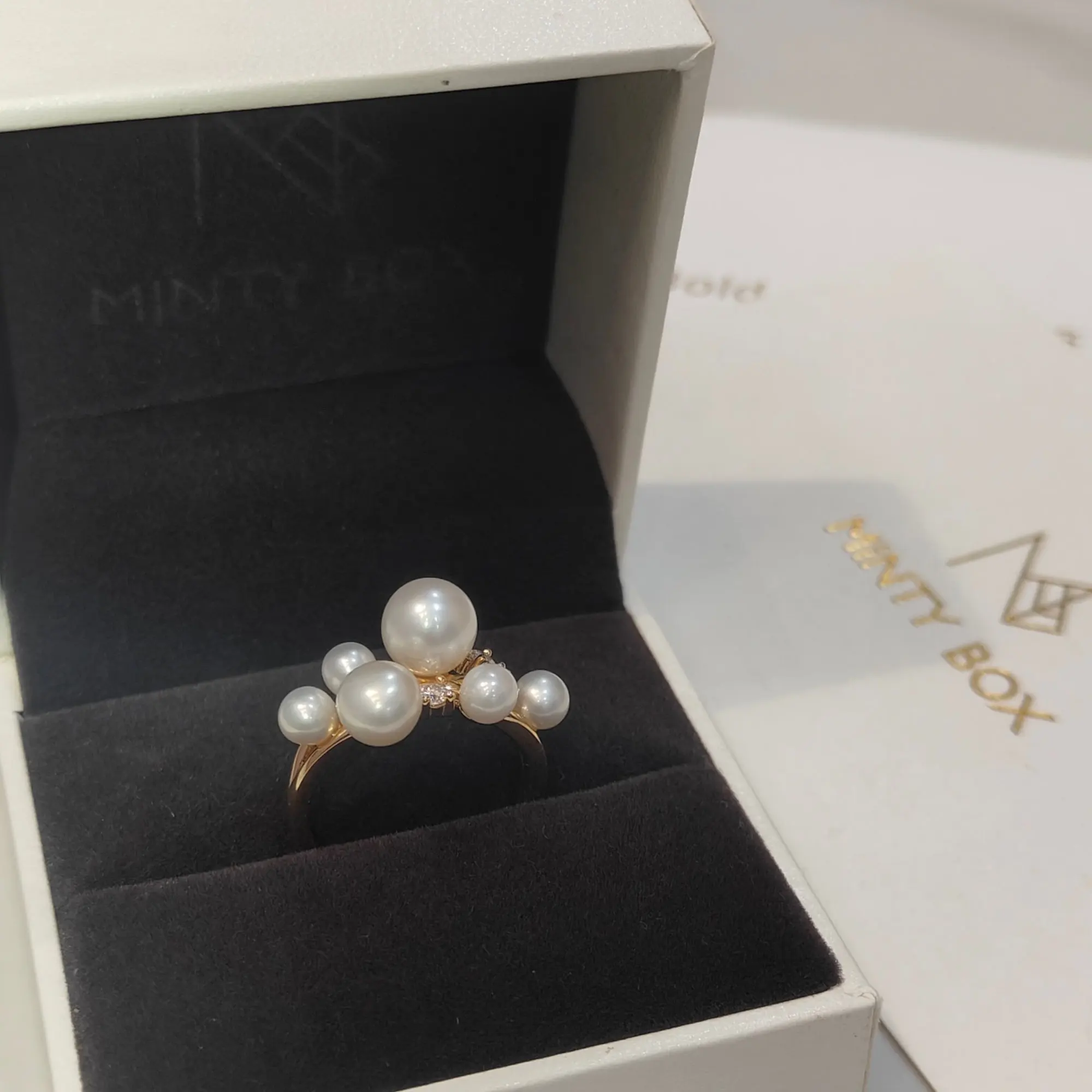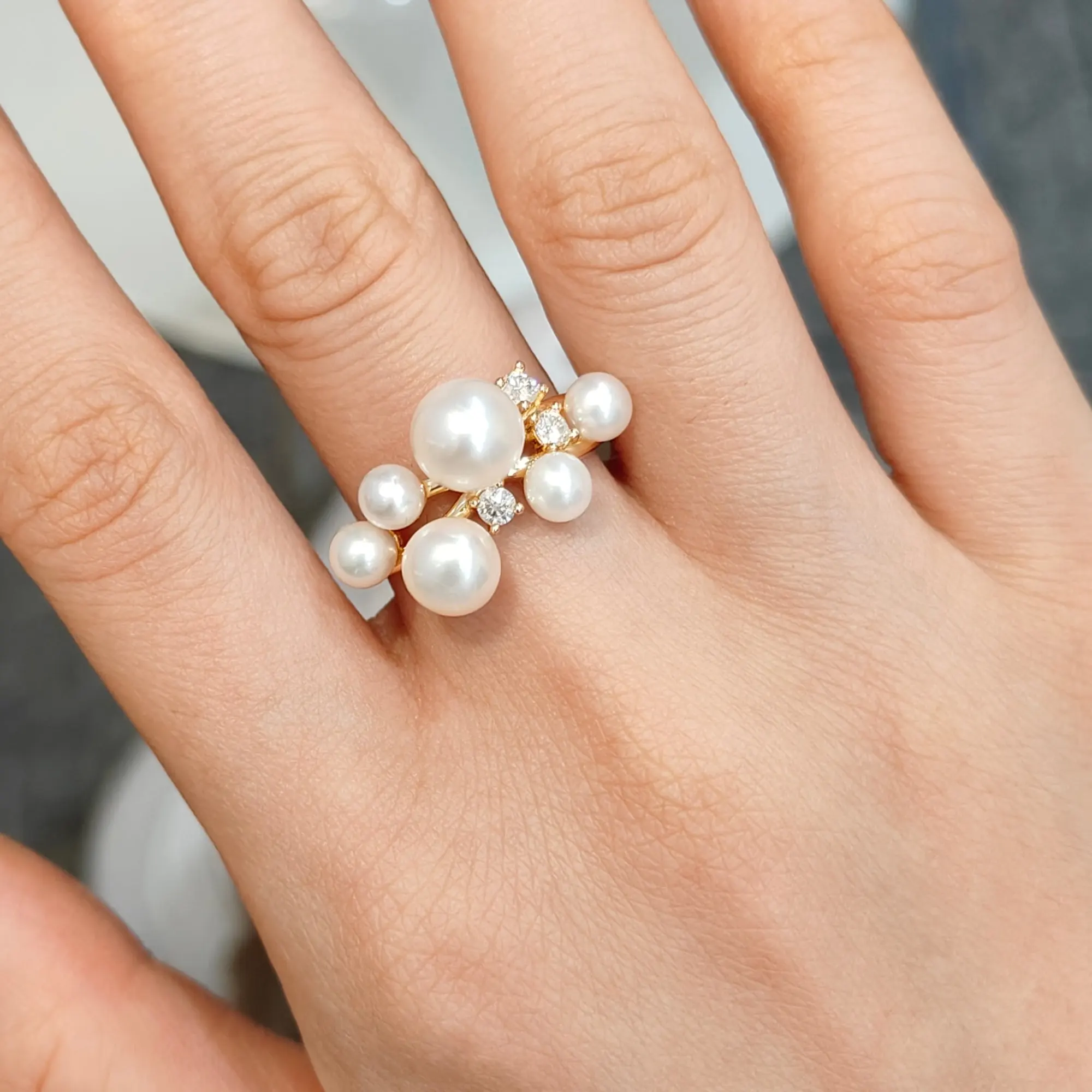 The Celeste Pearl Ring is where timeless purity meets modern brilliance. At its heart rests a luminous freshwater pearl, gracefully accented by D Color VVS1 Moissanite stones for a touch of eternal sparkle.