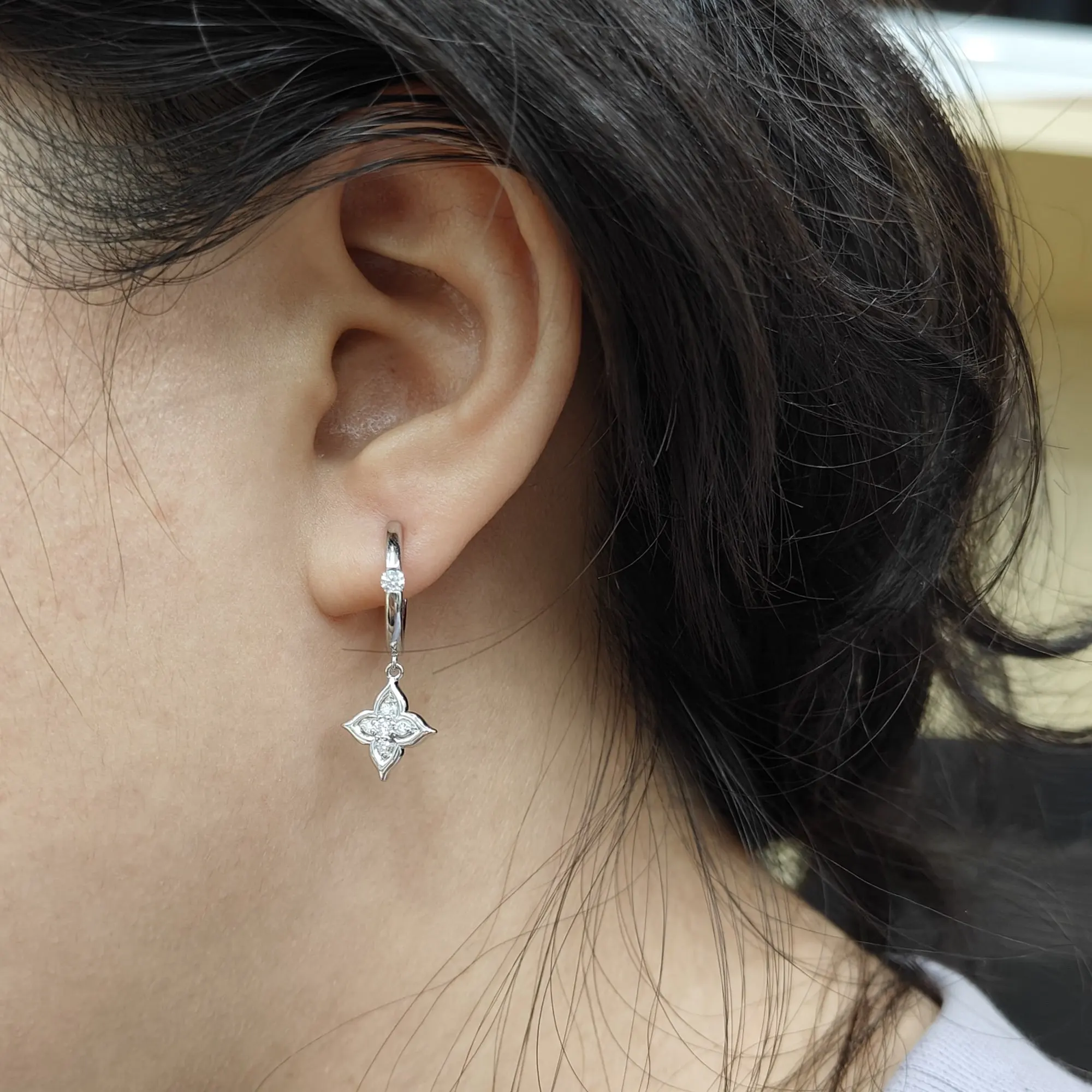 Each earring showcases a delicately crafted clover motif adorned with VVS1 Moissanite stones, capturing light from every angle. The design blends modern refinement with timeless symbolism, representing faith, hope, and love, reinterpreted through Dazzoro’s artistry.