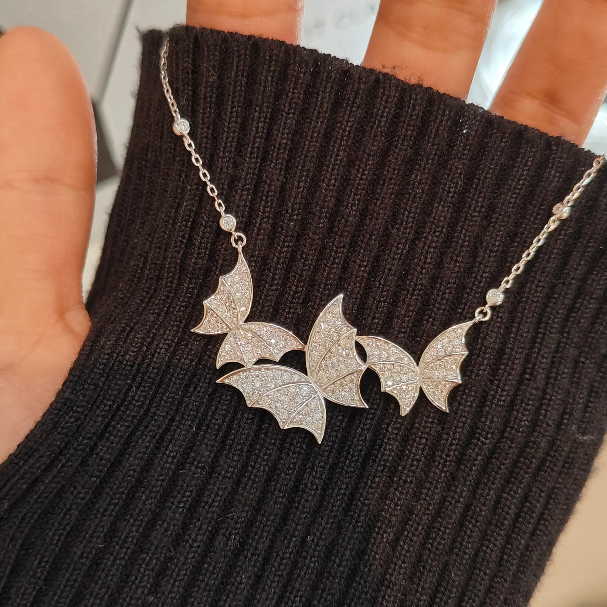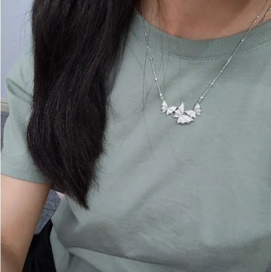 The Monarch Radiance Moissanite Necklace is crafted from 100% 925 Sterling Silver and features a butterfly-inspired design that symbolizes grace and transformation.